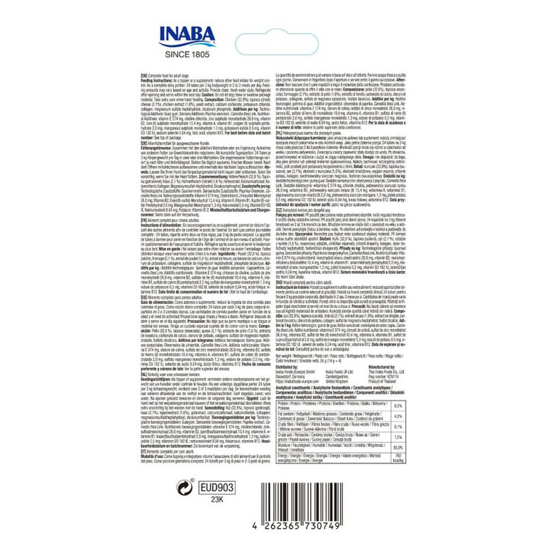 INABA Churu Meal Topper, XS-XL, Pui și Brânză, plic, tub recompense fără cereale câini, (piure), 56g