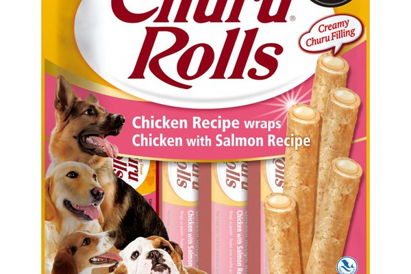 INABA Churu Rolls, XS-XL, Pui și Somon, punguță recompense fără cereale câini, semimoist, 92g