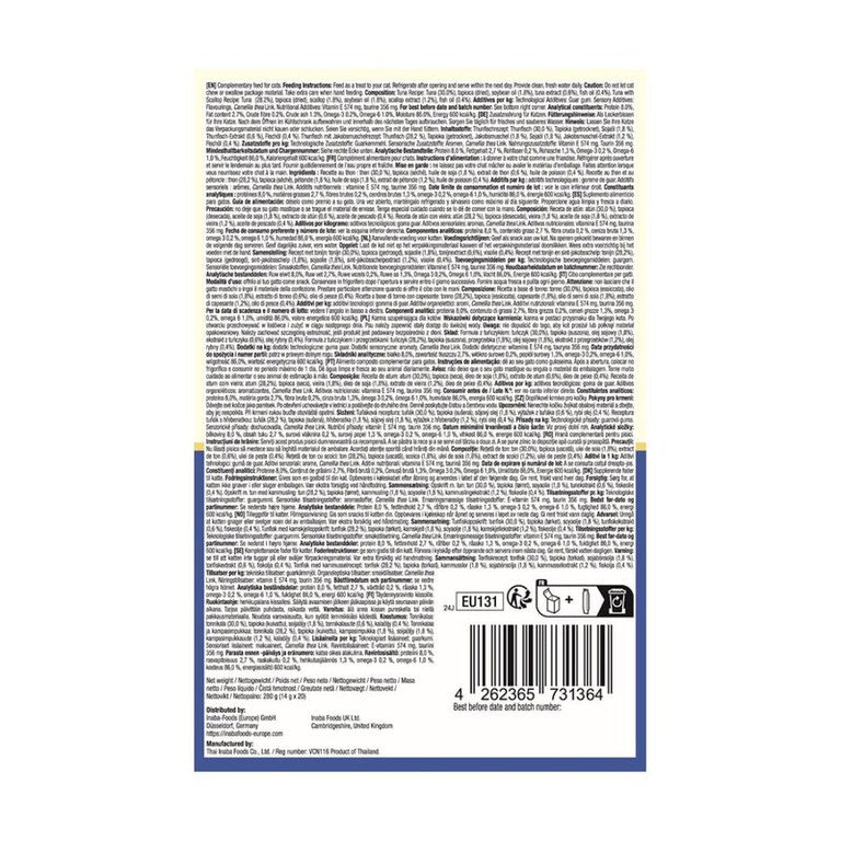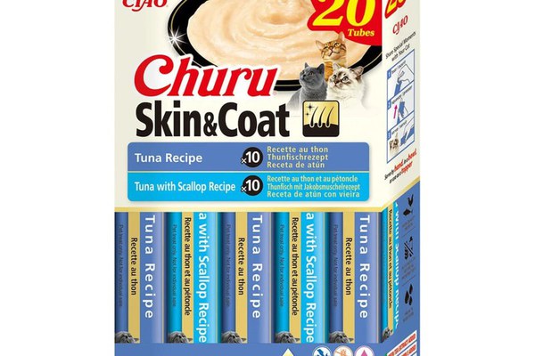 INABA Churu Skin&Coat Tuna Varieties, Ton, cutie recompense fără cereale pisici, (piure), 280g