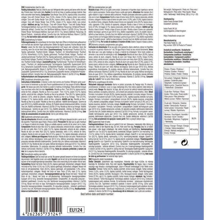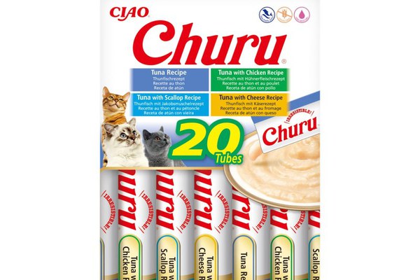 INABA Churu Tuna Varieties (Ton, Ton și Pui|Brânză|Scoici), cutie, tub recompense fără cereale pisici, (topping), 280g