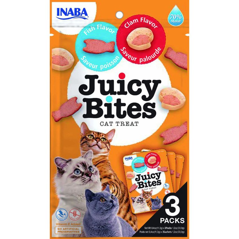 INABA Juicy Bites, Pește și Scoici, punguță, recompense fără cereale pisici, semimoist INABA Juicy Bites, Pește și Scoici, punguță, plic recompense fără cereale pisici, semimoist, 33g