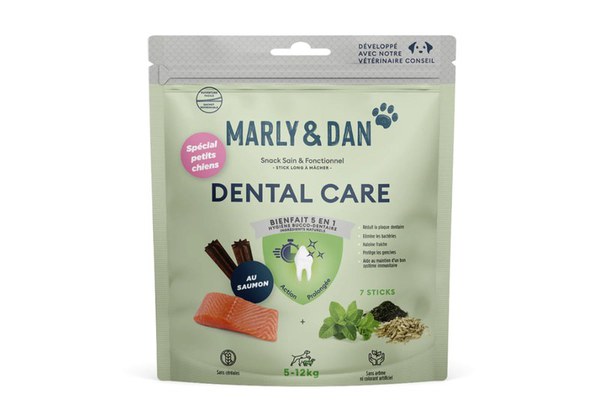 MARLY&DAN Dental Care Sticks, XS-S, Somon, punguță recompense funcționale fără cereale câini, sensibilități dentare, 100g