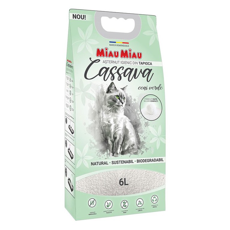 MIAU MIAU Cassava, ceai verde, așternut igienic pisici, granule, tapioca, aglomerant, ecologic, biodegradabil, 6l MIAU MIAU Cassava, neparfumat, așternut igienic pisici, granule, tapioca, aglomerant, ecologic, biodegradabil, 6l