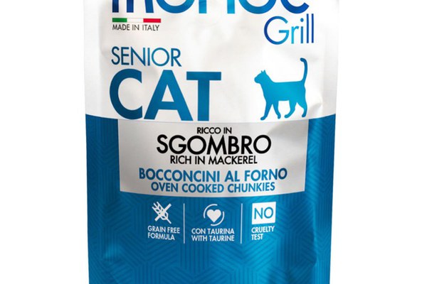 MONGE Grill Senior, Macrou, plic hrană umedă fără cereale pisici senior, (în aspic), 85g