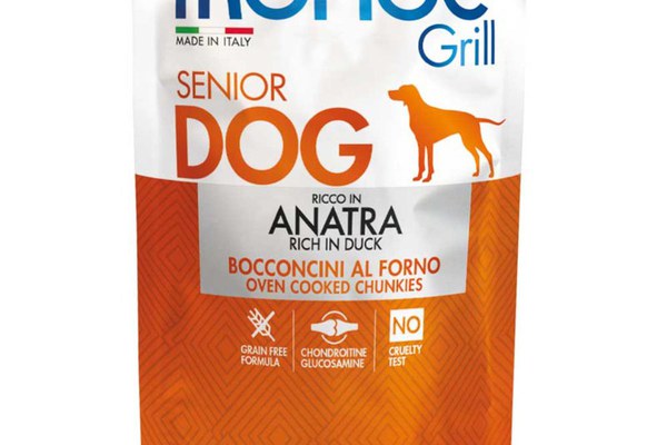 MONGE Grill Senior, XS-XL, Rață, plic hrană umedă câini senior, (în suc propriu), 100g
