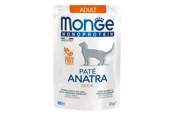 MONGE Monoprotein, Rață, plic hrană umedă monoproteică fără cereale pisici, (pate), 85g