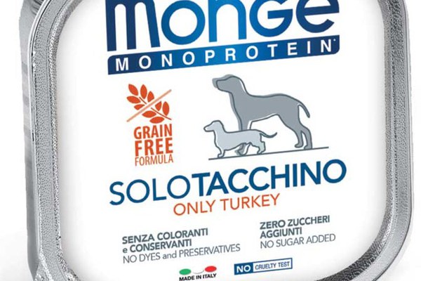 MONGE Monoprotein, XS-XL, Curcan, tăviță hrană umedă monoproteică fără cereale câini, (pate), 150g