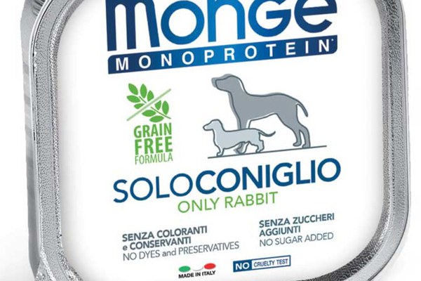 MONGE Monoprotein, XS-XL, Iepure, tăviță hrană umedă monoproteică fără cereale câini, (pate), 150g