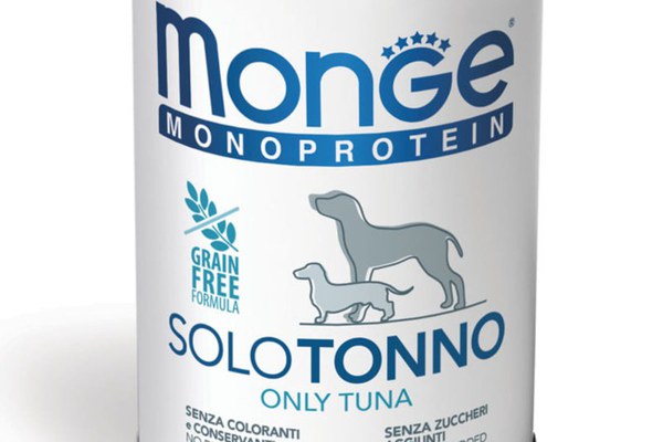 MONGE Monoprotein, XS-XL, Ton, conservă hrană umedă monoproteică fără cereale câini, (pate), 400g