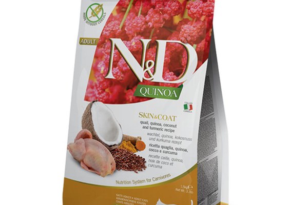 N&D Quinoa Skin & Coat, Prepeliță, hrană uscată fără cereale pisici, piele & blană, 1.5kg