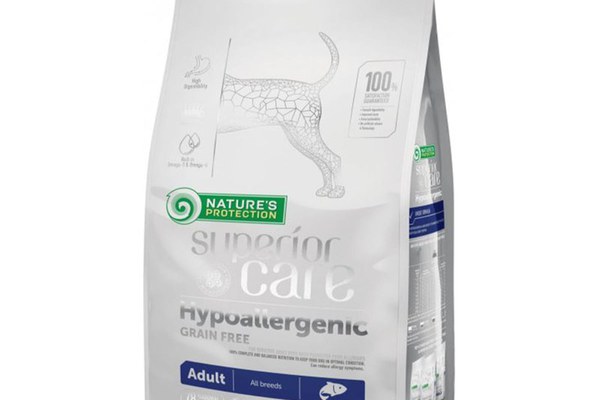 NATURES PROTECTION Superior Care Hypoallergenic, Somon, hrană uscată fără cereale câini, afecțiuni digestive și dermatologice, 10kg