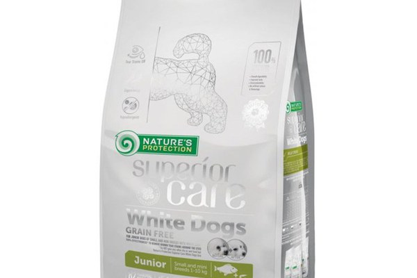NATURES PROTECTION Superior Care White Dogs Junior Small&Mini, Pește Alb, hrană uscată fără cereale câini juniori, reducerea petelor la câinii albi NATURES PROTECTION Superior Care White Dogs Junior XS - S, Pește Alb, hrană uscată fără cereale câini juni
