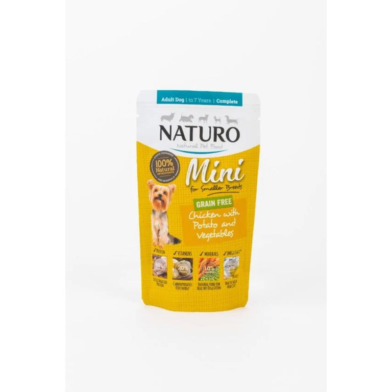 NATURO Mini, XS-S, Pui și Cartofi, plic hrană umedă fără cereale câini, (în suc propriu), 150g