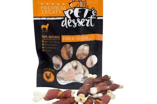 PET'S DESSERT Bone & Chicken, XS-XL, Pui, punguță recompense fără cereale câini, 80g