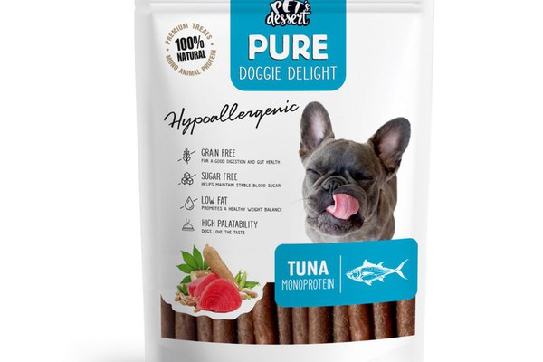 PET'S DESSERT Pure Doggie Delight Hypoallergenic, XS-XL, Ton, punguță recompense monoproteice fără cereale câini, alergii, 80g