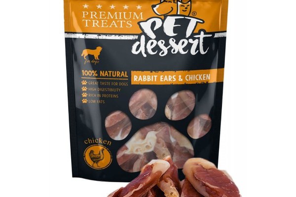PET'S DESSERT Rabbit Ears & Chicken, XS-XL, Iepure și Pui, punguță recompense fără cereale câini, 80g