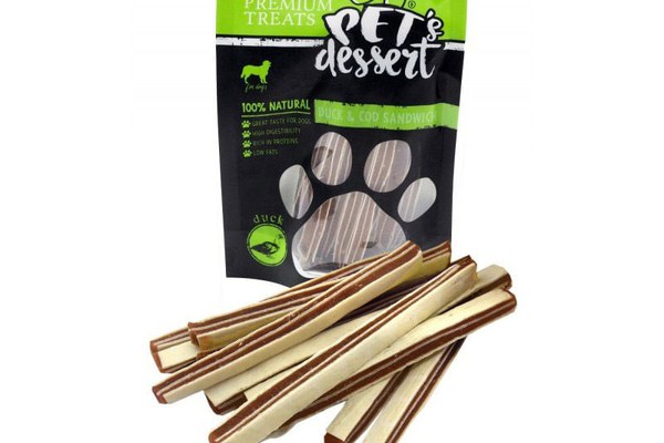 PET'S DESSERT Sandwich, XS-XL, Rață și Cod, punguță recompense fără cereale câini, 80g
