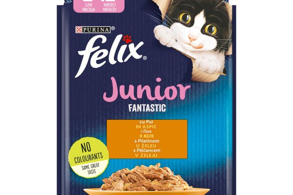 PURINA Felix Fantastic Junior, Pui, hrană umedă pisici junior, (în aspic) PURINA Felix Fantastic Junior, Pui, plic hrană umedă pisici junior, (în aspic), 85g