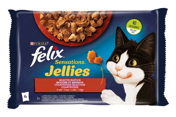 FELIX SENSATIONS este o gama de rețete care arată , miros și au un gust delicios pentru pisica ta . Fiecare rețeta conține bucăți fragede în diferite arome de aspic, pentru a-i face servirea plăcută și pentru a-i oferi o combinație de gusturi și arome apetisante ce-i vor încânta simțurile . FELIX SENSATIONS este o combinație de ingrediente de calitate, cu bucăți delicioase în aspic, pentru că pisica ta să fie plină de viață . Hrană 100% completă și echilibrată pentru pisici adulte Fără arome, conservanți sau coloranți artificiali adăugați .