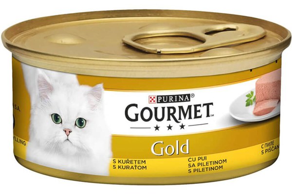 GOURMET Gold a creat Pate cu pui, o reteta delicioasa pentru a-i rasfata gustul sofisticat cu o experienta culinara unica. Pateul este usor, aerat si pregatit cu atentie pentru a-i oferi pisicii tale placerea unei senzatii delicate si fine. Pate de la GOURMET Gold, ispiteste-ti pisica cu un deliciu fin si rafinat! Hrana completa pentru pisici adulte Ofera pisicii tale placerea unei senzatii fine si delicate. Fara coloranti artificiali, conservanti si arome adaugate.