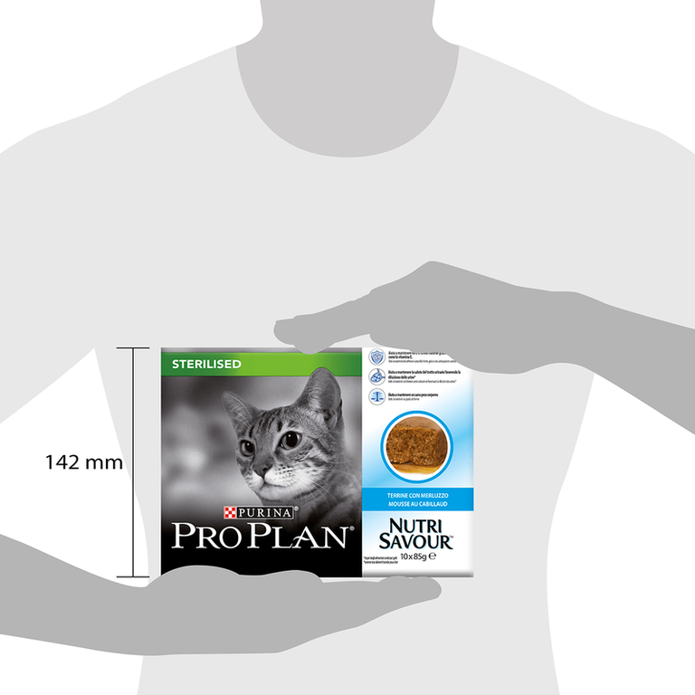 PURINA Pro Plan Nutrisavour Sterilised, Terină cu Cod, hrană umedă pisici sterilizate, (în sos) PURINA Pro Plan Nutrisavour Sterilised, Terină cu Cod, pachet economic plic hrană umedă pisici sterilizate, (în sos), 85g x 10