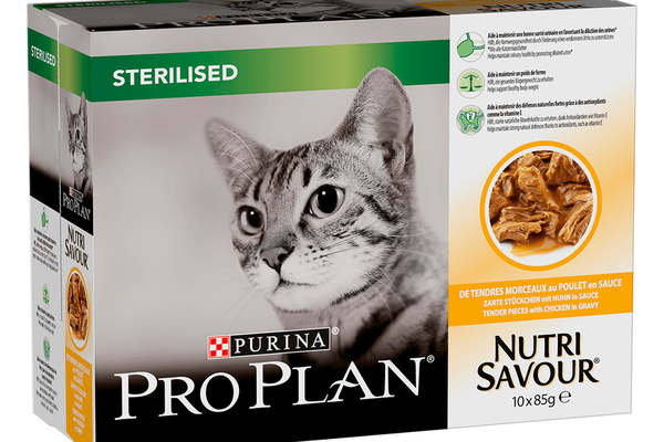 PURINA Pro Plan Sterilised Nutrisavour, Pui, hrană umedă pisici sterilizate, (în sos) PURINA Pro Plan Sterilised Nutrisavour, Pui, pachet economic plic hrană umedă pisici sterilizate, (în sos), 85g x 10
