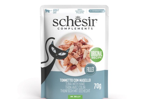 SCHESIR Complementary In Jelly, Pui și Merluciu, plic hrană umedă pisici, (în aspic), 70g