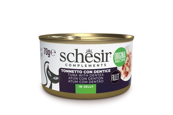 SCHESIR Complementary In Jelly, Ton și Știucă, conservă hrană umedă pisici, (în aspic), 70g