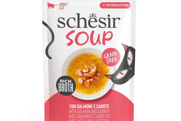 SCHESIR Complementary Soup, Somon și Morcov, plic hrană umedă fără cereale pisici, (în supă), 40g