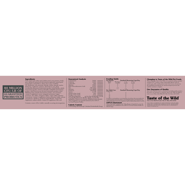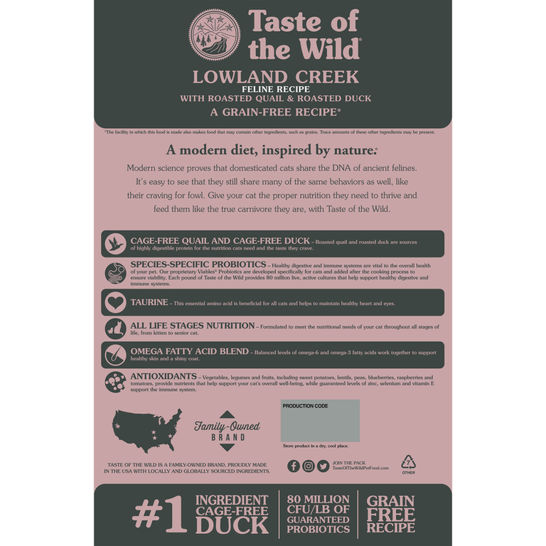 TASTE OF THE WILD Lowland Creek, Prepeliță și Rată, hrană uscată fără cereale pisici, 2kg
