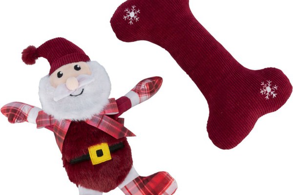 TRIXIE Christmas Set Os & Mos Craciun, jucărie de pluș câini XS-XL, cu sunet, pluș, roșu, 30cm