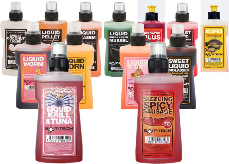 Aditivul Bait-Tech Liquid este folosit de pescarii in mod special ca aditiv in apa pentru umectarea nadei sau a peletelor dar si pentru prepararea semintelor. Se remarca printr-o putere de atractie sporita avand o valoare nutritiva foarte mare. De asemenea, poate fi folosit si pentru a glazura pelete gata umectate si pregatite pentru momitoare Method Feeder precum si a momelilor de carlig. Foarte important de stiut si retinut este faptul ca aceast aditiv lichid este PVA Friendly (nu topeste saculetii solubili), poate fi folosit pentru realizarea stick mix-urilor sau poate fi turnat pur si simplu peste saculetii PVA pregatiti pentru nadire.