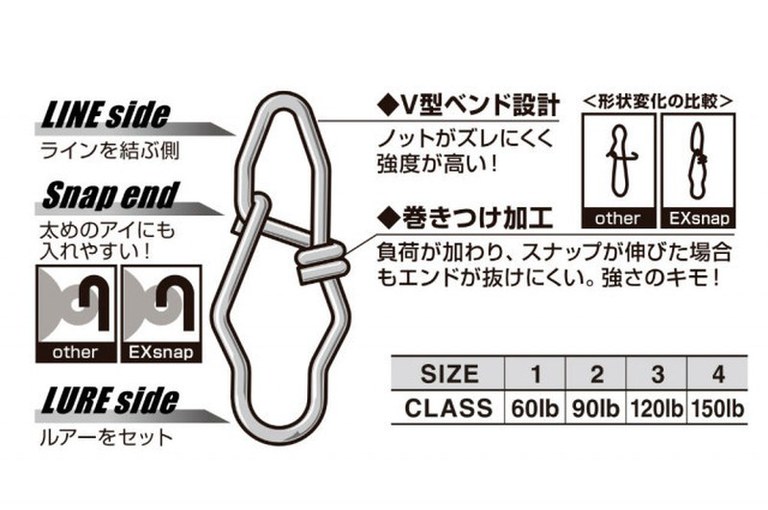 Agrafa Decoy Sn-14 Ex Extra Strong Snap este o agrafa de cea mai buna calitate japoneza, din otel extrem de rezistent, tratata anti-coroziune, cu forme specifice unei conectari sigure a nalucilor. Caracteristici: Rezistenta: Nr. 1 - 27.20. Nr. 2 - 40.80 kg; Nr. 3 - 54.40 kg; Nr. 4 - 68 kg; Marime: 1, 2, 3, 4; Cantitate: 7 buc/plic.