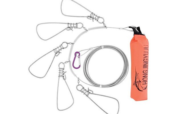 Set de agrafe destinate pastrarii salaului, stiucii sau somnului. Setul include: 5 agrafe, carabina, flotor, struna metalica si gentuta pentru transport.