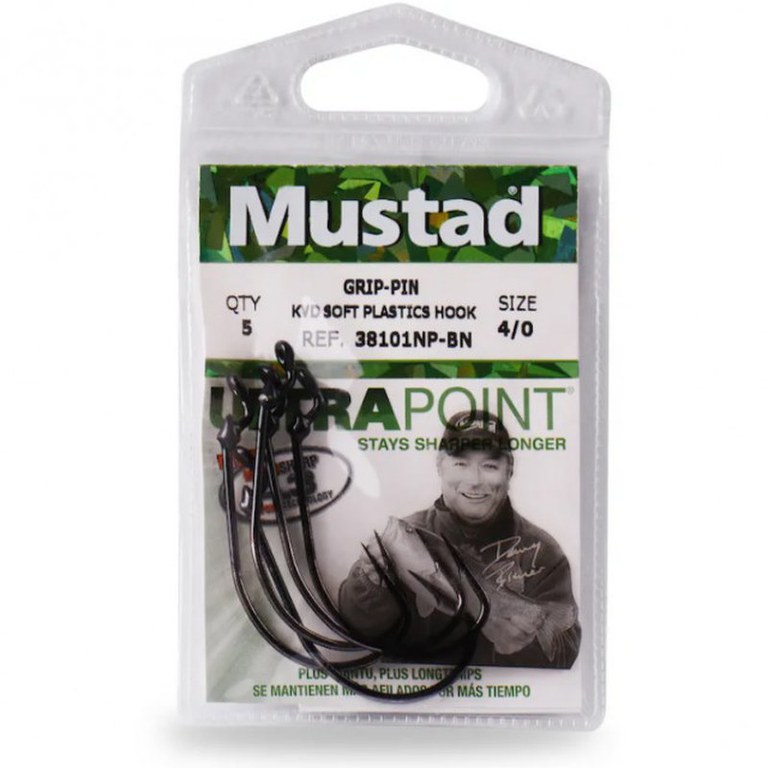 Carligele dedicate nalucilor din plastic moale Grip-Pin® au un stift din rasina turnat care fixeaza in siguranta o gama larga de naluci moi, avand un design "no slip, no slide", fara a rupe momeala. Carligul avand curbura larga este alegerea ideala pentru o gama larga de naluci soft. Tija puternica 1X este o baza excelenta pentru pescuitul in apropierea pragurilor si a vegetatiei. Folositi-l pentru a prinde bass, biban, pastrav prun, pastrav curcubeu, salau, stiuca. Acoperit in finisajul de Black Nickel Mustad, care este de 4 ori mai rezistent la coroziune decat nichelul negru traditional. Ascutit 4.3 UltraPoint® Technology; Varf Opti-Angle; Putere 1X; Deschidere foarte larga; Ochet; Grip Pin® acoperit cu rasina Ambalaj 5buc./plic