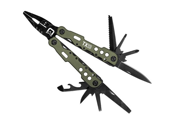 Delphin TaktyX 13 este un cleste sofisticat, prevazut cu multe functii ce vor fi de mare ajutor in diferite situatii. Este construit din otel inoxidabil si incorporeaza 13 instrumente diferite, rezultand o combinatie de cleste, cutit, fierastrau, desfacator de sticle si conserve, pila, taietor de cablu, unealta pentru gaurit si patru tipuri diferite de surubelnite. Fiecare dintre aceste instrumente este prevazut cu un sistem de siguranta si blocare. Este ideal pentru activitati si reparatii de tip DIY, constructie monturi sau indepartare carlige. Este recomandat atat pescarilor, cat si iubitorilor de activitati outdoor sau meseriasilor. Clestele multifunctional TaktyX 13 este livrat cu o husa de transport care poate fi atasata la centura. Caracteristici: Tip accesoriu: Cleste multifunctional; Material: otel inoxidabil; Incorporeaza 13 instrumente diferite; Recomandat atat pescarilor, cat si meseriasilor; Culoare: Verde.