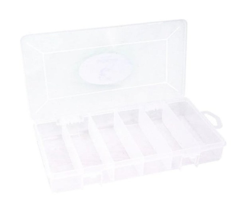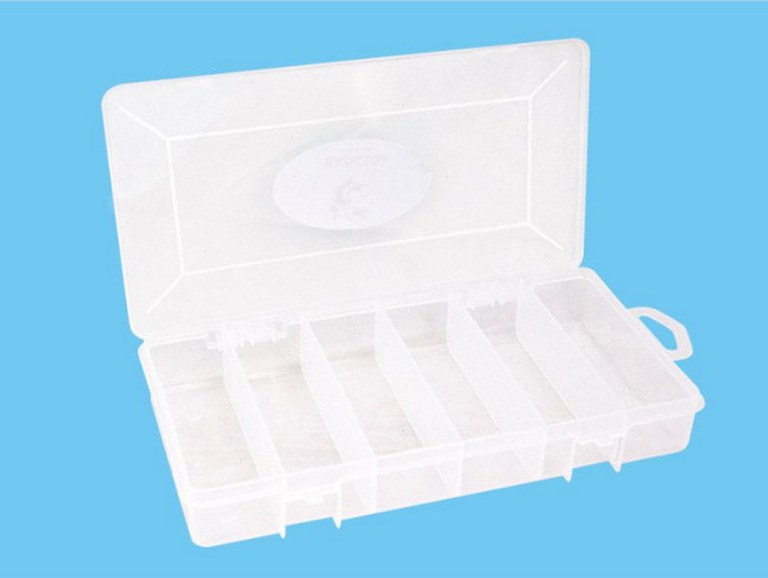Cutie Baracuda transparenta astfel incat sa vezi cu usurinta toate accesoriile stocate in interior. cutie accesorii cu 5 compartimente longitudinale; dimensiuni: 20.9x11.8x3.5cm