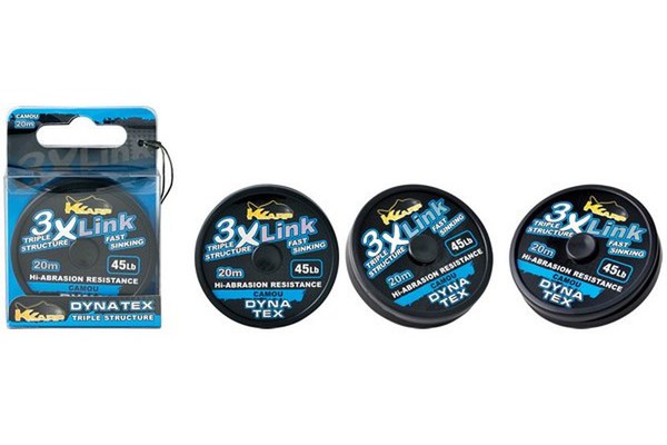 Firul acesta ofera o rezistenta mare in conditii de pescuit extreme, cum ar fi ape cu structuri sau scoici si pietre ascutite. Cu o conformatie tripla formata din 8 fire textile impletite strans si imbinate din 3 tipuri de fibre, firul textil K-Karp Dynatex 3X-Link se caracterizeaza prin rezistenta fara egal la frecare, scufundare rapida si proprietati antitangle. Poate fi utilizat si ca inaintas textil. Caracteristici: Tip fir: textil; Lungime: 20m; Rezistenta mare la abraziune; Structura: 3x8 fire impletite; Culoare: Camou; Proprietati anti-tangle; Scufundator; Variante: 25lbs rezistenta - 35lbs rezistenta - 45lbs rezistenta