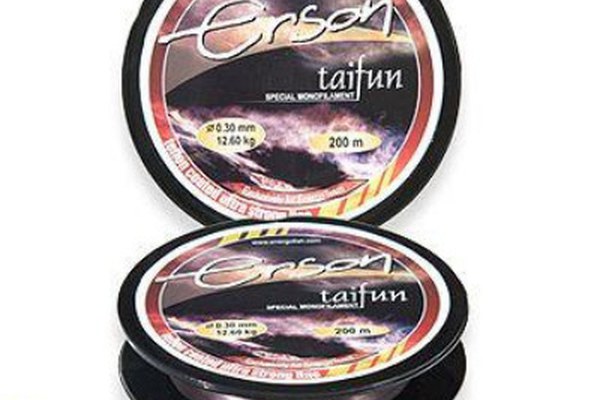 Erson Taifun este un fir suplu, tratat pentru protectie impotriva razelor solare si insesizabil in apa. Caracteristici de rezistenta a firului: 0,10 mm - 1,46 kg 0,12 mm - 1,95 kg 0,14 mm - 2,9 kg 0,16 mm - 3,8 kg 0,18 mm - 4,6 kg 0,20 mm - 5,9 kg 0,25 mm - 8,8 kg 0,30 mm - 12,6 kg 0,35 mm - 15,3 kg 0,40 mm - 18,2 kg