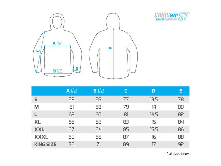 Geaca Delphin CruisAIR WINTER 5T este alegerea perfectă pentru pescarii care caută protecție totală împotriva frigului, ploii și vântului . Concepută pentru condiții de iarnă extremă, oferă impermeabilitate de 5000 mm și respirabilitate de 3000 g/m²/24h , menținându-te uscat și confortabil chiar și în timpul mișcării active. Interiorul este căptușit cu fleece moale , inclusiv pe guler, pentru un plus de confort și izolare termică. Buzunarele laterale sunt căptușite și prevăzute cu fermoare impermeabile , iar un buzunar interior cu fermoar oferă spațiu sigur pentru documente sau obiecte de valoare. Gluga reglabilă în două puncte, manșetele ajustabile cu Velcro și manșonul elastic interior cu orificiu pentru degetul mare previn pătrunderea frigului. Fermoarul dublu frontal este protejat de o clapetă antivânt, iar tivul reglabil ajută la menținerea căldurii. Caracteristici: ?️ Impermeabilitate: 5000 mm ? Respirabilitate: 3000 g/m²/24h ? Cusături: complet etanșe ? Căptușeală interioară: fleece moale ? Glugă: reglabilă în 2 puncte + Velcro spate ? Manșete: Velcro + manșon interior elastic ? Buzunare: laterale + interior, toate cu fermoare impermeabile ⚙️ Fermoar principal: dublu, cu protecție antivânt ? Tiv inferior: reglabil Instrucțiuni de întreținere: ? Se recomandă spălare la max. 30°C , fără stoarcere sau călcare. ? Folosește detergenți speciali pentru haine funcționale , iar pentru reîmprospătarea protecției, aplică ocazional un tratament de impermeabilizare . Această geacă face parte din costumul de iarnă Delphin CruisAIR WINTER 5T, oferind protecție completă atunci când este utilizată împreună cu pantalonii Delphin CruisAIR WINTER 5T