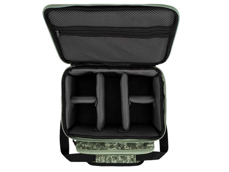 Delphin SPACE este o serie exclusivista de genti si rucsacuri de la Delphin. Dispun de o fabricatie de inalta calitate, fermoare solide si un design unic cu un camuflaj C2G. Fie ca sunteti un fotograf profesionist sau un pescar pasionat caruia ii place sa faca fotografii in timpul excursiilor de pescuit, Delphin SPACE Photo and Video este o alegere ideala pentru a va transporta si proteja echipamentul. A fost conceput pentru a fi sigur si practic. Spatiul din interior este impartit cu separatoare captusite, astfel incat aparatul foto si accesoriile vor fi protejate unele de altele. Separatoarele pot fi plasate pentru a ajusta spatiul din interior in functie de nevoile dumneavoastra. Peretii si separatoarele sunt puternic captusite cu spuma (10 mm) si acoperite cu o tesatura moale pentru protectie. Partea de jos a gentii are un strat de cauciuc pentru a tine umezeala la distanta. Acesta protejeaza continutul sa nu se ude sau sa se murdareasca atunci cand puneti geanta pe jos. Buzunarul din plasa are suficient spatiu pentru a depozita accesorii mici, cum ar fi carduri de memorie, cabluri de incarcare sau baterii de rezerva. Un buzunar mare si practic din fata poate depozita alte obiecte utile. In plus, geanta are fermoare de calitate cu logo-uri Delphin, un maner textil pe capac si o curea de umar captusita si reglabila. Caracteristici: Dimensiuni exterioare: 32x27x22 cm; Dimensiuni de depozitare in interior: 30x21x19 cm; Numar de compartimente: 1-5; Dimensiunile buzunarului din fata: 26x15x5 cm.