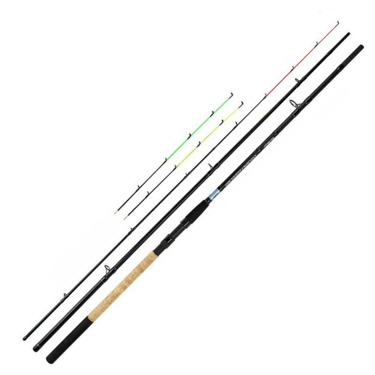 O serie de lansete feeder din carbon IM8 la preturi foarte accesibile care acopera nevoile pescuitului feeder pe canale, lacuri, rauri medii si mai mari. Sunt echipate cu inele SiC, mandrina cu filet si maner intr-o combinatie de material EVA si pluta. Fiecare model vine cu doua varfuri interschimbabile din fibra de sticla si un varf din carbon. Lansetele Cyclone feeder sunt o alegere excelenta atat pentru incepatorii in pescuitul la feeder, cat si pentru pescarii mai experimentati, cu un buget mai modest. Caracteristici: Lungime lanseta: 3,00m; Putere de aruncare: 180g; Numar tronsoane: 3 + 3 varfuri; Material blank: carbon IM8; Inele: SiC; Mandrina: carbon-metal; Maner: pluta si EVA; Varfuri: 2,5, 3 si 4 oz; Lungime transport: 105cm; Husa de protectie inclusa; Greutate: 271g.