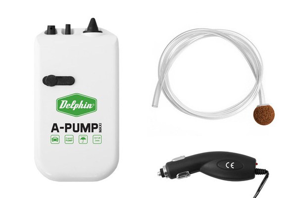 Oxigenator pe care il puteti folosi unde aveti nevoie sa mentineti in viata pestisorii momeala. A-Pump Maxi este alimentat cu doua baterii de 1.5V tip LR20. Aceste baterii permit o functionare continua de pana la 80 ore. Oxigenatorul are doua viteze care pompeaza un volum de 1-1.2L pe minut si este rezistent la ploaie. Se comercializeaza impreuna cu un furtun de cauciuc si piatra de aerare. Caracteristici: Dimensiuni: 145x79x43mm; Alimentare: 2 x 1.5V baterie LR20; Viteze: 2; Aerare: 1-1.2L/min; Durata functionare: pana la 80 ore; Accesorii: furtun de cauciuc, piatra aerare; adaptor auto.