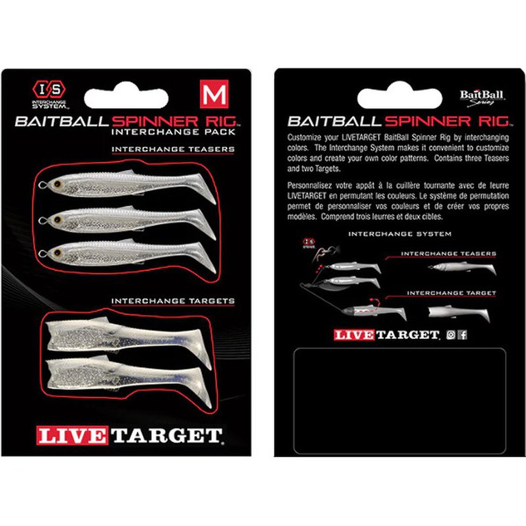 Personalizati sau reimprospatati-va BaitBall Spinner RIG LIVETARGET cu pachetul de rezerva BaitBall Spinner Rig. Aveti posibilitatea sa va creati propria combinatie de culori si modele pentru inlocuirea teaserelor si nalucii deteriorate. Fiecare pachet de schimb contine trei teasere si doua naluci principale. Selectati pachetul Interchange Sistem care se potriveste cu dimensiunea Spinner Rig, asa cum este mentionat dupa simbolul rosu al marimii indicat pe ambalaj : S, M, L. Astfel aveti asigurat ca naluca inlocuita se potriveste cu montajul original. Caracteristici: Tip produs:Rezerva Spinnere; Model naluca: BaitBall; Ambalaj : 5 Buc; Culoare: 855 Pearl White-Silver.