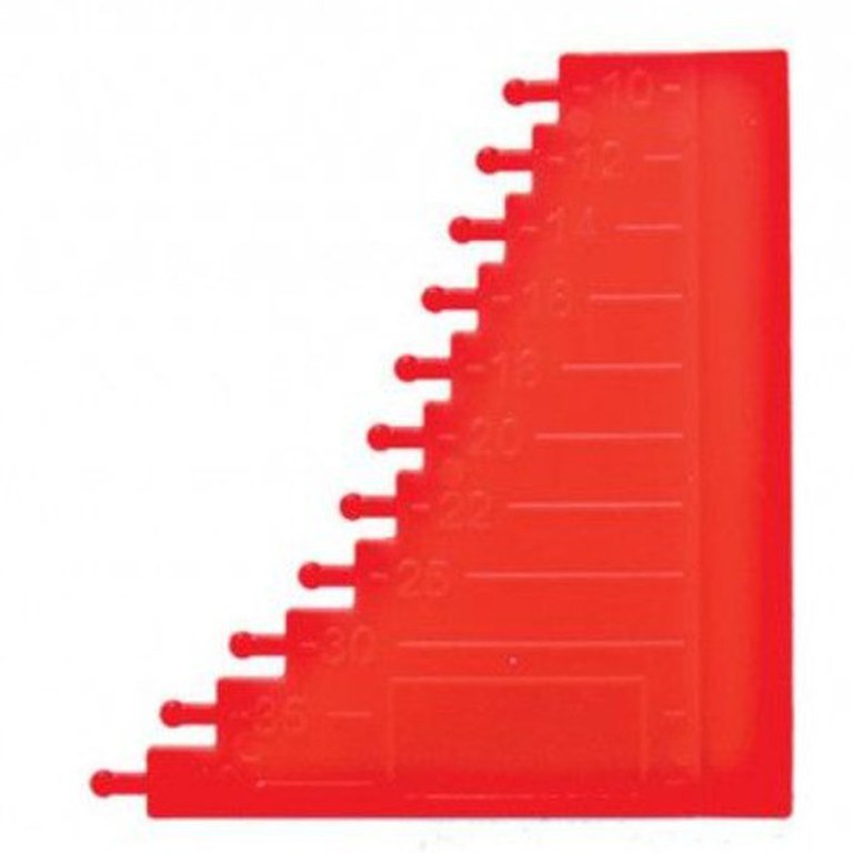 Instrument util in pescuit la crap cu care puteti masura lungimea firului de par. Asezati o bucla de fir pe unul dintre tepusii de plastic si puteti masura cu precizie lungimea firului.