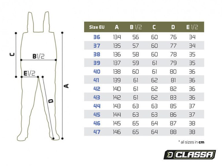 Delphin CLASSA sunt wadersi confortabili si de incredere la un pret de achizitie foarte avantajos. Se caracterizeaza prin proprietati excelente si detalii bine lucrate, cum ar fi cusaturile si imbinarile dintre materiale. Materialul ales este specific pentru greutatea redusa, flexibilitatea si rezistenta absoluta la apa. Datorita acestor parametri, va veti simti confortabil in wadersii CLASSA chiar si in timpul unei activitati sporite. In plus fata de bretelele standard reglabile, acest model dispune si de o curea detasabila, care permite o personalizare si mai buna la forma corpului pescarului. Un alt mare avantaj al unei centuri stranse este limitarea posibilitatii ca apa sa patrunda rapid in wadersi in cazul unei caderi nedorite in timpul deplasarii prin apa. Cizmele de cauciuc au o talpa solida si stabila care va va permite sa va deplasati in diferite conditii. De asemenea, sunt incluse proeminente ale calcaiului pentru a va putea descalta eficient. Compozitie: taslon / PVC.