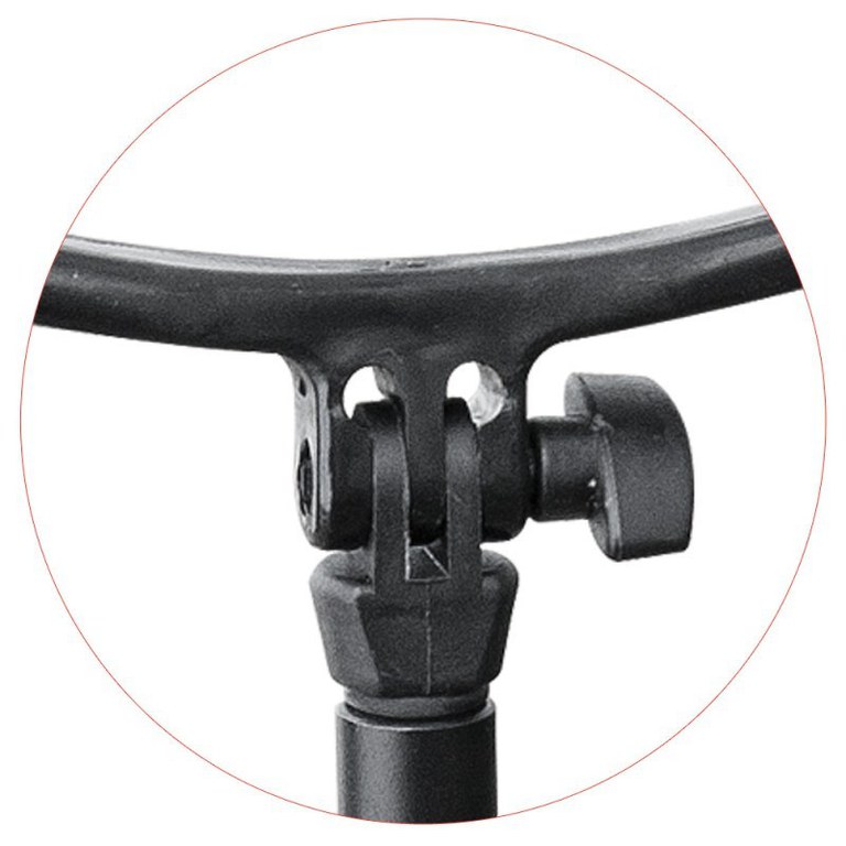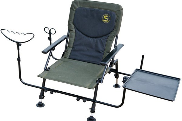 Scaun pentru pescuitul la feeder cu picioare ajustabile, cotiere si multiple accesorii. Distanta de la sezutul scaunului fata de pamant variaza intre 26cm-34cm. Caracteristici: Material gros Oxford 600x300D; Cadru din aluminiu; Dimensiuni spatar (cm): 47x54; Dimensiuni sezut (cm): 39x47; Greutate: 5,8kg; Geanta pentru transport. A: masuta (avand dimensiunile de 32,5x41cm) cu pozitie reglabila; B: suport reglabil (fata) pentru lansetele de feeder; C: suport pentru maner laseta feeder; D: tija cu posibilitati de atasare a altor accesorii necesare.