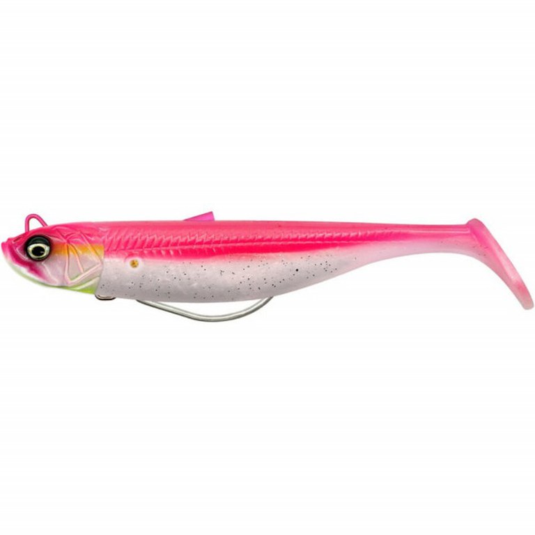 Savage Gear isi pune toata maiestria si priceperea in realizarea acestei game de naluci. Cu o actiune incredibil de realista, atat pe cadere, cat si pe recuperare, aceste naluci soft devin mult mai realiste. Folosind un jig stand-up care asigura o actiune perfecta, naluca se ridica pe recuperare si sta ridicata de coada atunci cand se aseaza pe fund. Poate fi folosita o scobitoare pentru sigurantarea corpului de jig, creand o prindere foarte simpla si sigura. Corpul moale din PVC este prevazut cu un recipient din sticla in care se adauga bila rattlin pentru a oferi nalucii un plus de atractivitate. Aceasta versiune off-set a nalucii are o conexiune puternica click-on pentru carligul EWG interschimbabil. Caracteristici: Detalii foarte realiste Actiune plina de viata pe recuperare si cadere Miscare articulata a capului Design off-set Conexiune click pentru carligul EWG Carlig EWG forjat din otel carbon in marimi # 3/0 sau # 5/0 Slot rattlin din sticla detasabil in corp Suport pentru corp Pro Peg pentru o fixare eficienta Coada de rezerva inclusa Tip naluca: Soft Model naluca: Shad Lungime: 12,5 cm Greutate: 28,0 g Culoare: Pink Back Marime carlig sau ancora: #3/0 Ambalaj: 2+1 buc./plic