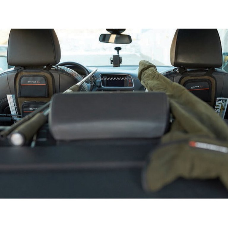 Specialistii Savage Gear au gasit solutia ideala pentru partidele de pescuit in care ne deplasam cu masina pentru a schimba locul de pescuit, astfel au creat un suport special ce poate fi montat pe spatarul scaunelor de la masina. Acest accesoriu este fabricat din poliester cationic 600D, fiecare lanseta se asigura cu sistem velcro foarte rezistent. Pe langa cei doi suporti de scaun, producatorul a inclus si un suport elastic puternic care poate fi fixat intre scaune sau de tavan pentru a sustine lansete chiar mai lungi sau montate. Caracteristici: Material: poliester cationic 600D; Suport elastic prevazut cu carabiniere metalice la capete; Sistem de fixare lansete cu banda velcro; Culoare: maro/negru.