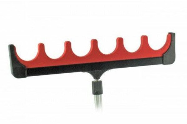 Suport Formax pentru lansete feeder sau match cu lungimea de 32 cm si un numar de 6 posturi. Datorita filetului standard se poate monta foarte usor pe orice brat de feeder sau pichet. Materialul EVA durabil si rezistent de pe lungimea suportului, protejeaza blank-ul lansetei de socuri mecanice si zgarieturi accidentale. Datorita formei sale, permite manevrarea lansetei foarte usor in timpul trasaturii. Caracteristici: Suport lansete feeder / match; Material: plastic si EVA rezistent; Protejeaza lansetele de socuri mecanice; Filet standard pentru orice tip de suport; Culoare: rosu cu negru; Numar posturi: 6; Lungime: 32cm
